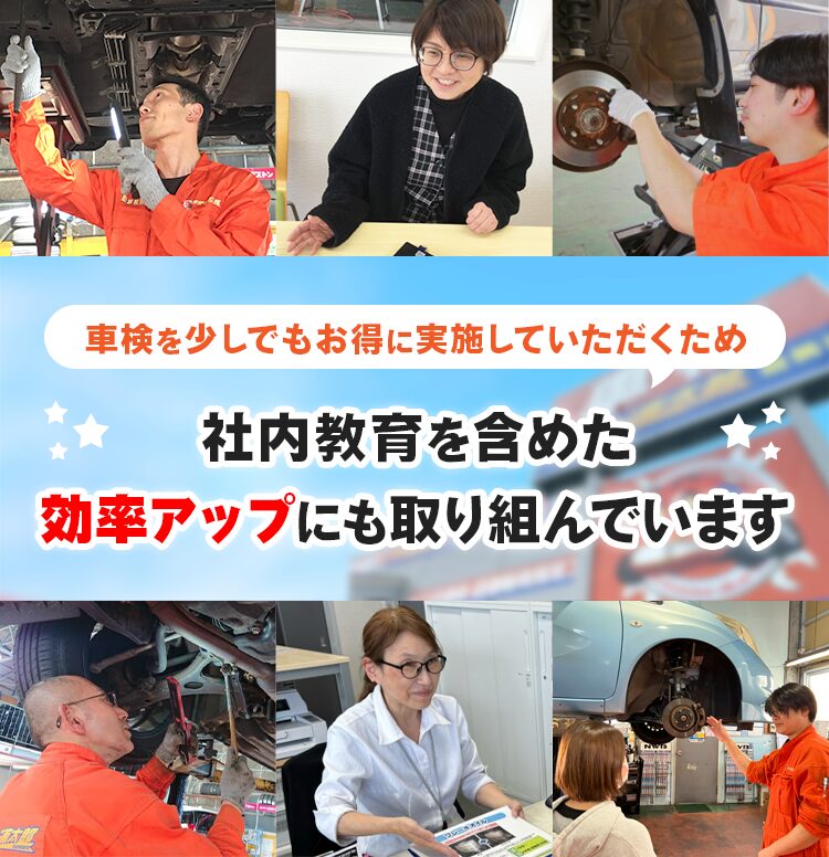 車検の速太郎では、予約制のため計画的で効率良く車検を進めることが可能です。また国家資格を保有した複数の車検専任スタッフが役割分担をして検査を実施することで、最短45分のスピード車検が実現できます。